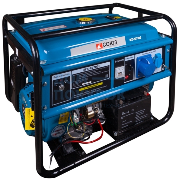Бензогенератор 6500 Вт Союз ЭГС-87700Э;
