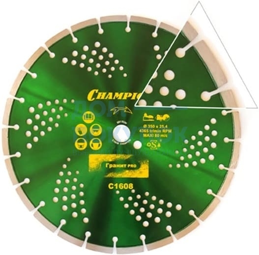 Диск алмазный 350х25,4х10 мм CHAMPION Гранит PRO Laser Granitek C1608