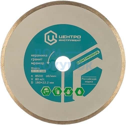 Диск алмазный отрезной (180 мм; 22.2 мм) для плиткорезов Центроинструмент 23-3-22-180