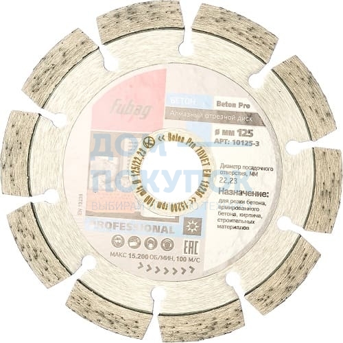 Диск алмазный отрезной Beton Pro (125х22.2 мм) для УШМ Fubag 10125-3