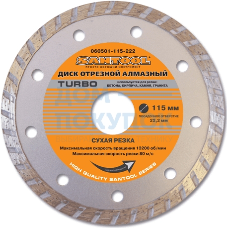 Диск отрезной алмазный "Turbo" 115x22.2 мм сухая резка SANTOOL 060501-115-222