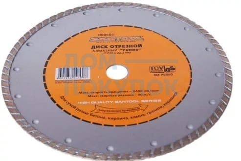Диск отрезной алмазный "Turbo" 180x22,2 мм сухая резка SANTOOL 060501-180-222