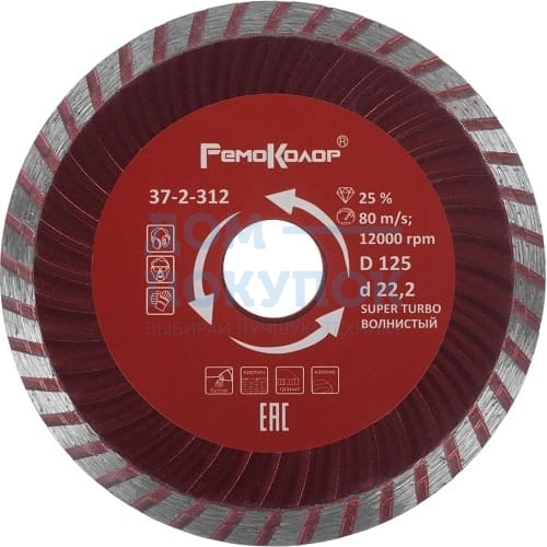 Диск отрезной алмазный универсальный Турбо волнистый профиль (125х22.2 мм) Remocolor 37-2-312