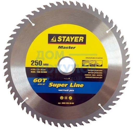Технические характеристики пильного диска Stayer 3682-250-30-60