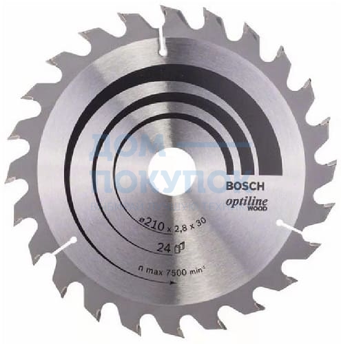 Диск пильный по дереву OPTILINE (210х30 мм; 24T) для ручных циркулярных пил Bosch 2608640621