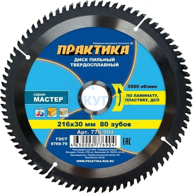 Диск пильный по ламинату (216х30 мм; Z80) ПРАКТИКА 776-904