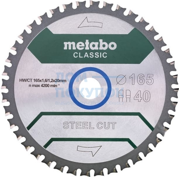 Диск пильный SteelCutClassic (165x20 мм; 40FZFA) Metabo 628651000