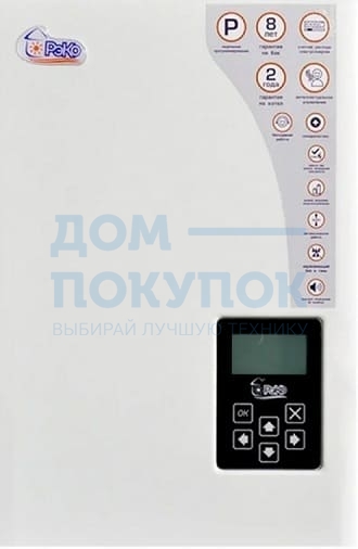 Котёл электрический РЭКО - 1 шт.Руководство по эксплуатации - 1 шт.Вставка плавкая ВПТ6-13 - 1 шт.Наконечник TR8-6 - 3 шт.Дюбель распорный 12х60 - 3 шт.Шуруп с шестигранной головкой Ост. О.Ц. 8х60 - 3 шт.Наконечник TY2-4 - 3 шт.
