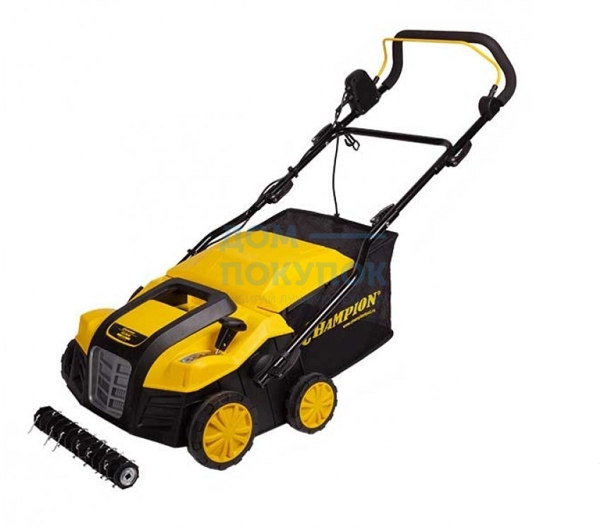Электрический скарификатор Champion ESC1840 укомплектован двумя сменными валиками. Удобная панель управления размещена на рукоятке инструмента. Выполняет 2 функции: насыщает почву кислородом, а также эффективно убирает весь мусор с поверхности.