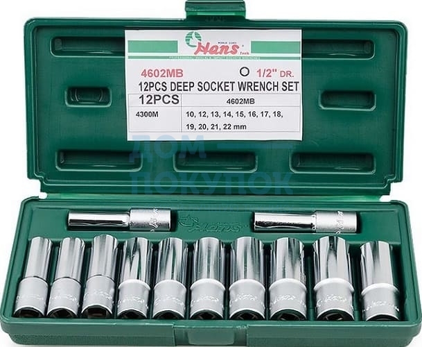 Комплект 6-ти гранных головок (10-22 мм; 1/2"; 12 предметов) Hans 4602MB