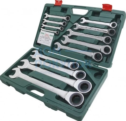 Комплект трещоточных комбинированных ключей 8-32мм, 13шт Hans 166513MB