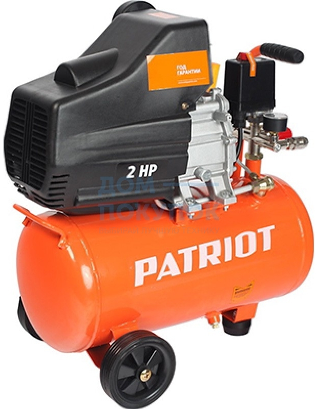 Компрессор PATRIOT EURO 24-240K 525306366; Спиральный шланг; Краскораспылитель; Пистолет для продувки; Пистолет для накачки шин; Пульверизатор; Упаковка.