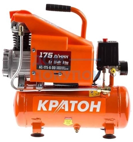 Компрессор с прямой передачей Кратон AC-175-6-DD 3 01 01 030; Воздушный фильтр; Емкость пластмассовая со смазочным маслом марки 100, 250мл; Упаковка.