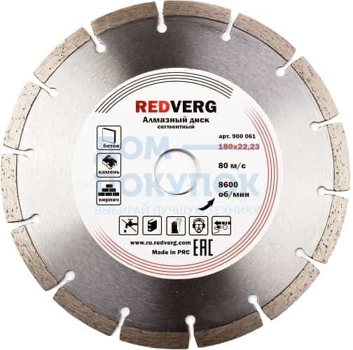 Круг алмазный сегментный по бетону и кирпичу (150х22.23 мм) REDVERG 6621277