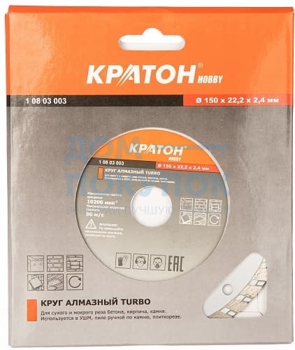 Круг алмазный TURBO HOBBY (150х22.2х2.4 мм) Кратон 1 08 03 003