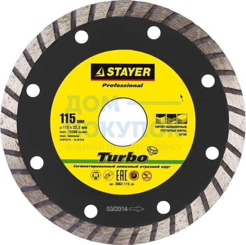 Круг отрезной алмазный "PROFI" сегментированный сухая и влажная резка для УШМ 115х22.2 мм STAYER 3662-115_z01