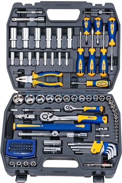 Набор торцевых шестигранных Г-образных ключей (9 пр.);Автомобильный тестер Молоток слесарный 300 гр.;Отвертки шлицевые (3 шт.): 6,5*38, 6,5*100, 5,5*75;Отвертки крестовые (3 шт.): ph1*75, ph2*100, ph2*38;Пассатижи комбинированные 180 мм;Головки торцевые ½''Dr. E - профиль (4 шт.): E10,E12,E14,E16;Адаптер ½''Dr. (M) - ?''Dr. (F) под удлинитель ½''Dr.;Рукоятка трещоточная с быстрым сбросом ½''Dr. (72Т);Кардан шарнирный ½''Dr.;Удлинитель ½''Dr. (2 шт.): 5'', 10'';Головки торцевые ½''Dr. 6 граней (12 шт.)14,15,16,17,18,19,20,22,24,27,30,32 mm;Головки торцевые ½''Dr. глубокие 6 граней (6 шт.): 14,15,17,19,21,22;Биты:Torx (8шт.)T8,T10,T15,T20,T25,T27,T30,T40;Hex (7 шт.)1,5, H2,H2.5,H3,H4,H5,H6;Шлицевые (7 шт.): Sl3,Sl4, Sl4.5, Sl5,Sl5.5,Sl6,Sl7;Крестовые (10 шт.): Ph0,Ph1,Ph2, Ph3, Ph4,Pz0,Pz1,Pz2,Pz3,Pz4;Удлинитель гибкий ¼''Dr. 5" (125мм);Вороток Т-образный ¼''Dr. (125мм);Кардан шарнирный ¼''Dr.;Рукоятка трещоточная с быстрым сбросом ¼''Dr. (72Т);Удлинитель ¼''Dr. (2 шт.) 2'', 4'';Головки торцевые ¼''Dr. 6 граней (12 шт.): 4,4.5,5,5.5,6,7,8,9,10,11,12,13mm;Головки торцевые ¼''Dr. глубокие 6 граней (8 шт.): 6,7,8,9,10,11,12,13;Универсальный модуль с битами-вставками (32 шт.):Держатель вставок ¼''Dr. с магнитом (60мм) под электроинструментДержатель вставок ¼''Dr. с магнитом (25мм)Рукоятка - удлинитель ¼''Dr.;Переходник ¼''Dr. - шестигранник (под электроинструмент);Кейс.