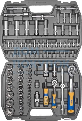 Торцевые головки ½'' 6 граней(17шт.):10;11;12;13;14;15;16;17;18;19;20;22;23;24;27;30;32;Торцевые головки ½'' 6 граней высокие (5шт.):14;15;17;19;22;Кардан шарнирный ½'';Торцевые головки свечные (2шт.):16,21;Удлинитель ½'' (2шт.):125,250mm;Рукоятка трещоточная с быстрым сбросом ½'' 250mm (72 зубца, двухкомпонентная);Держатель для бит-вставок ½'';Переходник ?" (F) х ½'' (М);Биты-вставки 30mm (16шт.):шестигранные (5шт.):7;8;10;12;14;torx (4шт.):40;45;50;55;шлицевые (3шт.):8;10;12;Phillips (2шт.):3;4;pozi (2шт.):3;4;Торцевые головки ¼'' 6 граней (13шт.):4;4,5;5;5,5;6;7;8;9;10;11;12;13;14;Торцевые головки ¼'' 6 граней высокие (8шт.):6;7;8;9;10;11;12;13;Удлинитель ¼'' (2шт.):50,100mm;Вороток Т-образный ¼'';Кардан шарнирный ¼'';Рукоятка трещоточная с быстрым сбросом ¼'' 145mm (72 зубца, двухкомпонентная);Рукоятка-удлинитель ¼'';Торцевые головки ¼'' с битами-вставками 6,35*25mm (18шт.):torx (7шт.):8;10;15;20;25;27;30;шестигранные (4шт.):3;4;5;6;шлицевые (3шт.):4;5,5;6,5;Phillips (2шт.):1;24pozi (2шт.):1;2;Ключи торцевые шестигранные Г-образные (3шт.):1,5;2;2,5;Кейс.