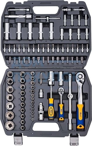 Торцевые головки ½'' 12 граней (17шт.):10;11;12;13;14;15;16;17;18;19;20;22;23;24;27;30;32;Торцевые головки ½'' 12 граней высокие (5шт.):14;15;17;19;22;Кардан шарнирный ½'';Торцевые головки свечные (2шт.):16,21;Удлинитель ½'' (2шт.):125,250mm;Рукоятка трещоточная с быстрым сбросом ½'' 250mm (72 зубца, двухкомпонентная);Держатель для бит-вставок ½'';Переходник ?" (F) х ½'' (М);Биты-вставки 30mm: шестигранные (5шт.):7;8;10;12;14;Биты-вставки 30mm: torx (4шт.):40;45;50;55;Биты-вставки 30mm: шлицевые (3шт.):8;10;12;Биты-вставки 30mm: Phillips (2шт.):3;4;Биты-вставки 30mm: pozi (2шт.):3;4;Торцевые головки ¼'' 12 граней (13шт.):4;4,5;5;5,5;6;7;8;9;10;11;12;13;14;Торцевые головки ¼'' 12 граней высокие (8шт.):6;7;8;9;10;11;12;13;Удлинитель ¼'' (2шт.):50,100mm;Вороток Т-образный ¼'';Кардан шарнирный ¼'';Рукоятка трещоточная с быстрым сбросом ¼'' 145mm (72 зубца, двухкомпонентная);Рукоятка-удлинитель ¼'';Торцевые головки ¼'' с битами-вcтавками 6,35*25mm: torx (7шт.):8;10;15;20;25;27;30;Торцевые головки ¼'' с битами-вcтавками 6,35*25mm: шестигранные (4шт.):3;4;5;6;Торцевые головки ¼'' с битами-вcтавками 6,35*25mm:шлицевые (3шт.):4;5,5;6,5;Торцевые головки ¼'' с битами-вcтавками 6,35*25mm: Phillips (2шт.):1;2;Торцевые головки ¼'' с битами-вcтавками 6,35*25mm: pozi (2шт.):1;2;Ключи торцевые шестигранные Г-образные (3шт.):1,5;2;2,5;Кейс.