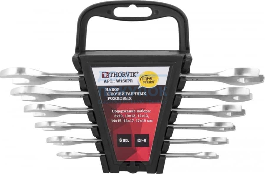 Набор ключей гаечных рожковых серии ARC на держателе, 8-19 мм, 6 предметов Thorvik W1S6PR 52617