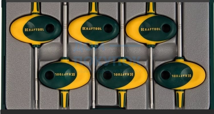 В набор входят 6 ключей: Т6, Т7, Т8, Т10, Т15, Т20. Они поставляются в пластиковом боксе.