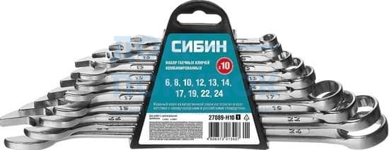 Набор комбинированных гаечных ключей 10 шт, 6 - 24 мм, СИБИН 27089-H10_z01