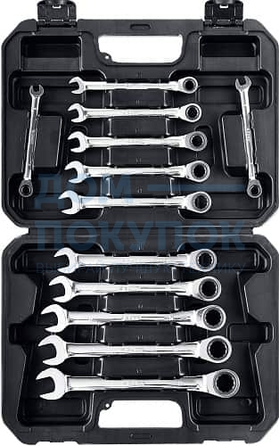 Ключи комбинированные трещоточные: 8, 9, 10, 11, 12, 13, 14, 15, 16, 17, 18, 19 мм;Пластиковый кейс