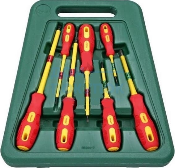Ложемент;7 отверток: шлицевые: 3х100 мм, 4х100 мм, 5.5х125 мм, 6.5х150 мм, крестовые: PH0х60 (23/8"), PH1х80 (31/8"), PH2х100 (4").