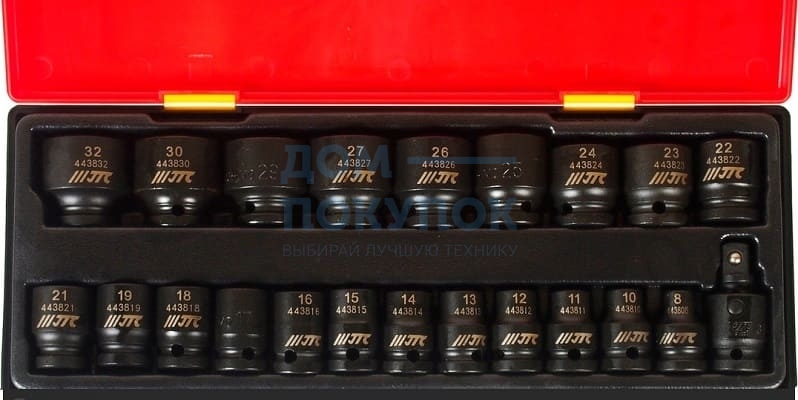 Набор шестигранных ударных торцевых головок 1/2" 8-32мм в кейсе 22шт JTC-K4223
