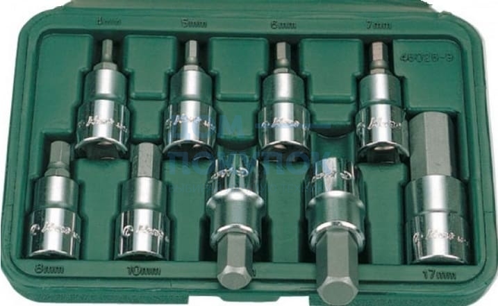 Набор торцевых головок-бит HEX (4-17 мм; 1/2") 9 шт. Hans 46026-9