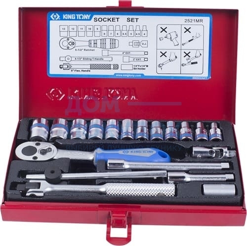 Набор торцевых головок с принадлежностями (1/4", шестигранные, 4-13 мм, 19 предметов) KING TONY 2521MR