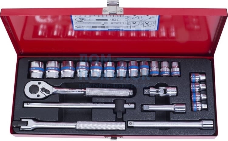 Набор торцевых головок с принадлежностями (3/8", двенадцатигранные, 6-22 мм, 22 предмета) KING TONY 3023MR