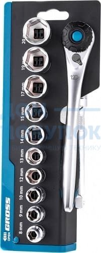 Набор торцевых головок, трещотка 120 зубьев, 12 предметов GROSS 14139