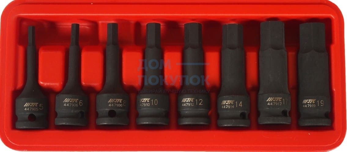 Набор ударных бит-головок 1/2" HEX H5-19 мм, длина 78 мм, в кейсе (8 предметов) JTC J408LH