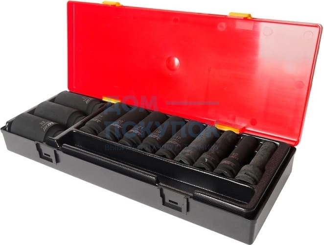 Ударные шестигранные головки 1/2": 10, 12, 13., 14, 17, 19, 21, 22, 24, 27, 30, 32 мм - 12 шт;Прочный бокс.