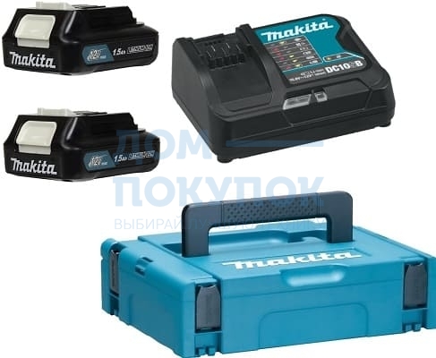Набор зарядное устройство DC10SB+ 2 аккумулятора BL1016B 12В, 1.5Ач, Li-ion в кейсе MakPac Makita 195817