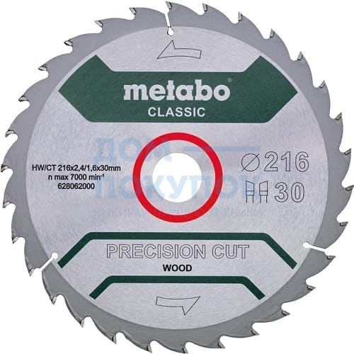 Пильный диск по дереву (216x2.4x30 мм) Metabo 628062000