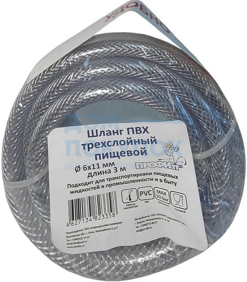 Прозрачный трехслойный армированный шланг Профитт 6х11мм, 3м 4823358