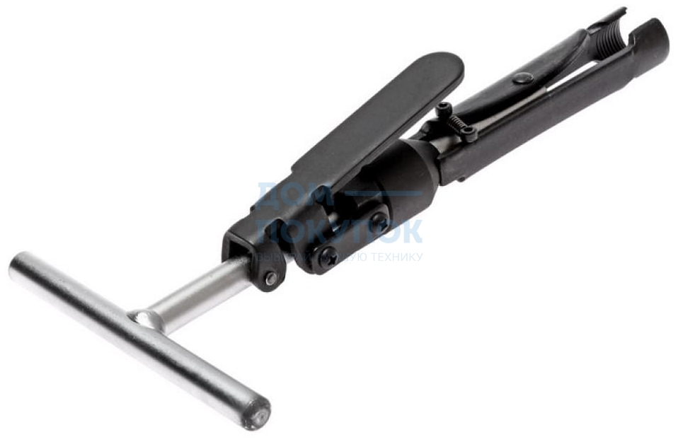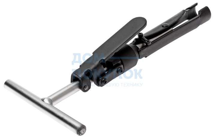Съемник оснащен фиксатором рабочей рукоятки, благодаря которому происходит более плотный захват сальника. Аккуратное последующее извлечение достигается за счет реализации в Т-образной конструкции принципа "штопора" - траектория движения сальника фиксирована и находится под контролем специалиста. Т-о