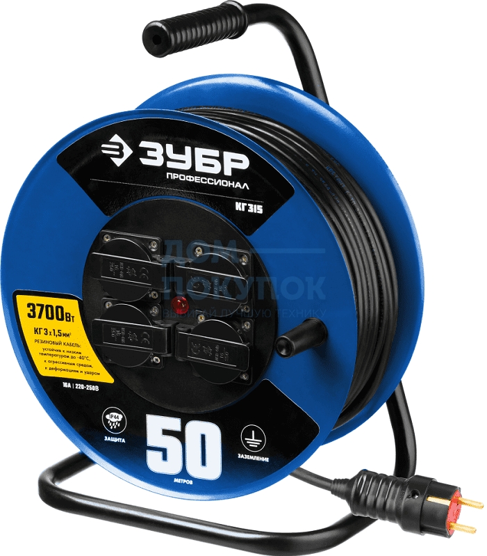 Удлинитель на катушке ЗУБР Профессионал КГ 315, 50 м, 3700 Вт, 4 гнезда 55080-50