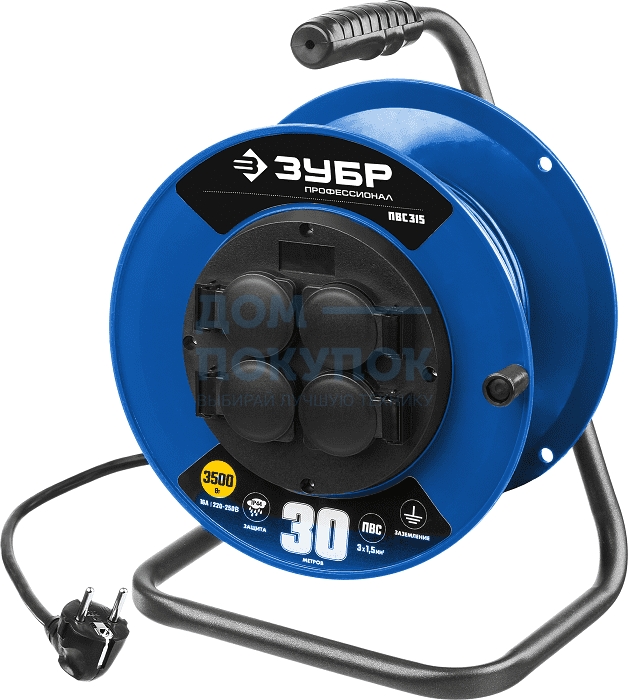 Удлинитель на катушке ЗУБР Профессионал ПВС 315, 30 м, 3500 Вт, 4 гнезда 55081-30