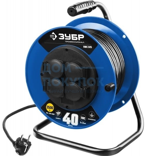 Удлинитель на катушке ЗУБР Профессионал ПВС 315, 40 м, 3500 Вт, 4 гнезда 55081-40