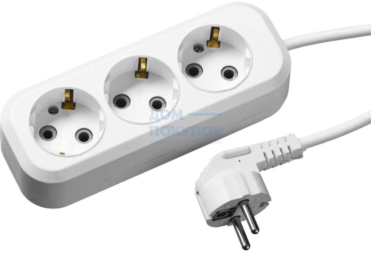 Удлинитель СИБИН электрический, 3 гнезда, макс мощн 2200Вт, 2м, заземление 55034-2